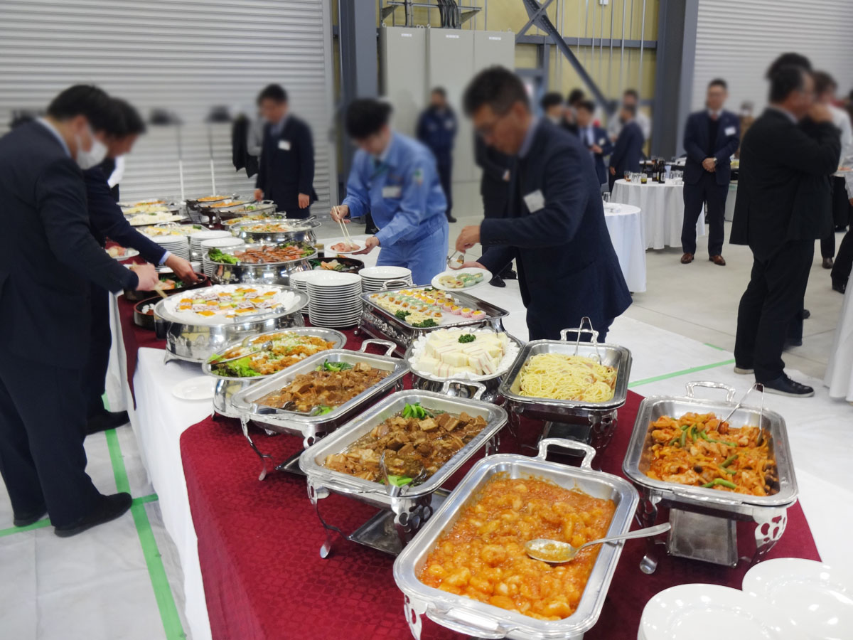 こんにちは!partyservice OMURAI亀山です!昨日の雨は長々と良く降りましたね。ひな祭りでしたが久しぶりに桜餅を食べました。子供の頃は和菓子屋さんに行かないと買えませんでしたが今はスーパーやコンビニで気軽に買えて便利になりましたね。さてケータリングのご紹介です。今回は千葉県市原市へ工場の竣工披露パーティーのご依頼を賜わり行って参りました。お料理、ドリンク、設営まで全てお任せ頂きました。こちらの企業様は皆さん元気で勢いを感じました。きっとこれからドンドン大きく発展される事と思います。